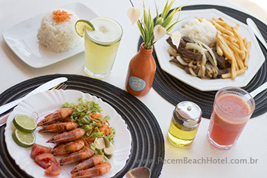 Delicioso Café da manhã e Restaurante com serviço a la carte, com cardápio variado de produtos, como carne, frango, peixe, saladas, lanches, sopas, massas, etc.